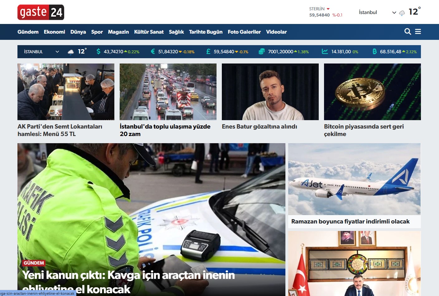 Türkiye’deki en güncel haberlere erişim kolaylığı sunan Gaste24.com, ulusal ve uluslararası gündemi yakından takip eden okuyucular için hızlı, güvenilir ve kapsamlı içerikler sunan güçlü bir dijital haber platformudur. Siyaset, ekonomi, dünya, spor, yaşam ve magazin gibi birçok farklı kategoride hazırlanan haberlerle geniş bir kitleye hitap eder. Sürekli güncellenen içerik yapısı ve kullanıcı dostu tasarımı sayesinde ziyaretçiler aradıkları bilgilere kolayca ulaşabilir. Güncel ve tarafsız habercilik anlayışı, Gaste24.com’u dijital medya alanında önemli bir referans kaynağı haline getirir.