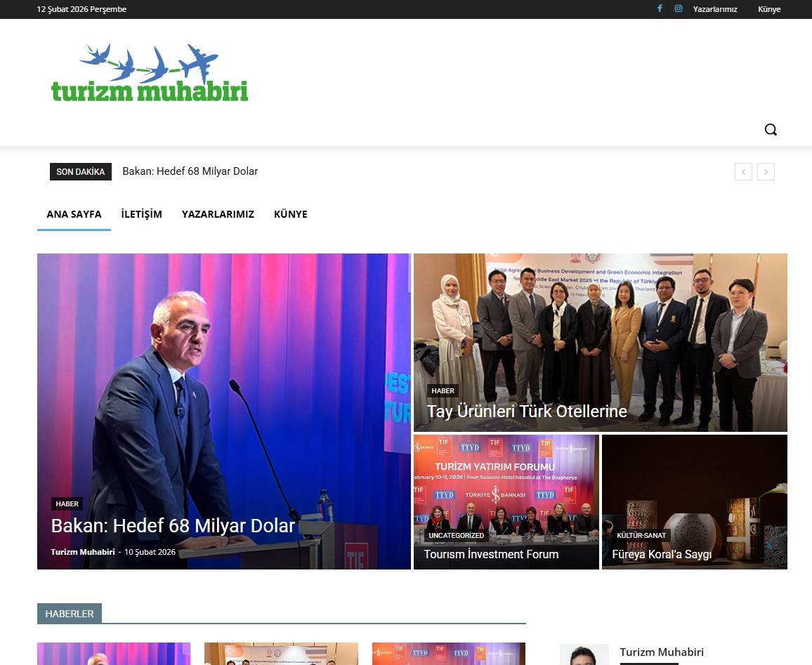 Türkiye’deki en güncel haberlere erişim kolaylığı sunan Turizmmuhabiri.com, turizm sektörüyle ilgili gelişmeleri yakından takip edenler için güvenilir ve kapsamlı içerikler sunan güçlü bir dijital haber platformudur. Otelcilik, seyahat, havacılık, destinasyon tanıtımları, turizm yatırımları ve sektör analizleri gibi birçok farklı konuda hazırlanan haber ve değerlendirmeler sayesinde geniş bir okuyucu kitlesine hitap eder. Sürekli güncellenen içerik yapısı ve kullanıcı dostu tasarımı ile ziyaretçiler aradıkları bilgiye hızlı ve kolay şekilde ulaşabilir. Güncel ve doğru bilgi anlayışı, Turizmmuhabiri.com’u turizm sektöründe önemli bir referans kaynağı haline getirir.
